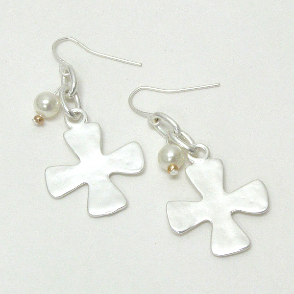 WHOLESALE METAL CROSS AND PEARL DANGLE DROP EARRING 398245