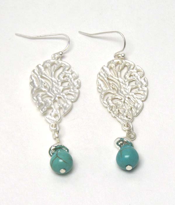 WHOLESALE HAMMERED METAL FILIGREE AND TURQUOISE DROP EARRING 398275