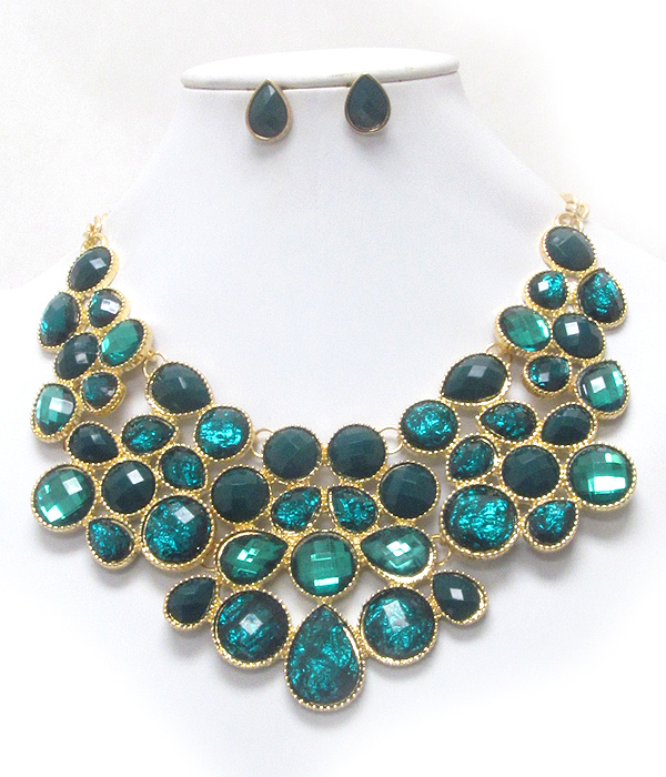 WHOLESALE MULTI SHAPE FACET ACRYLIC STONE DECO BIB NECKLACE EARRING SET 398289