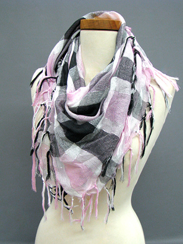 WHOLESALE THREE COLOR TONE CHECK PATTERN FRINGE SCARF 398582