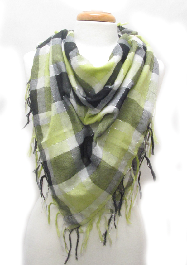 Three color tone check pattern fringe scarf