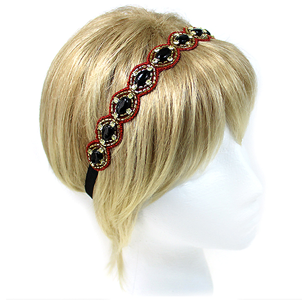 WHOLESALE HANDMADE MULTI BEAD AND STONE ACCENT STRETCH HEADBAND 398640