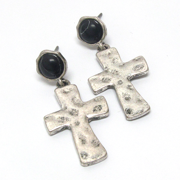 WHOLESALE HAMMERED METAL CROSS DROP EARRING 398782