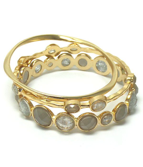 Multi facet acrylic bubble stone link bangle bracelet set of 3
