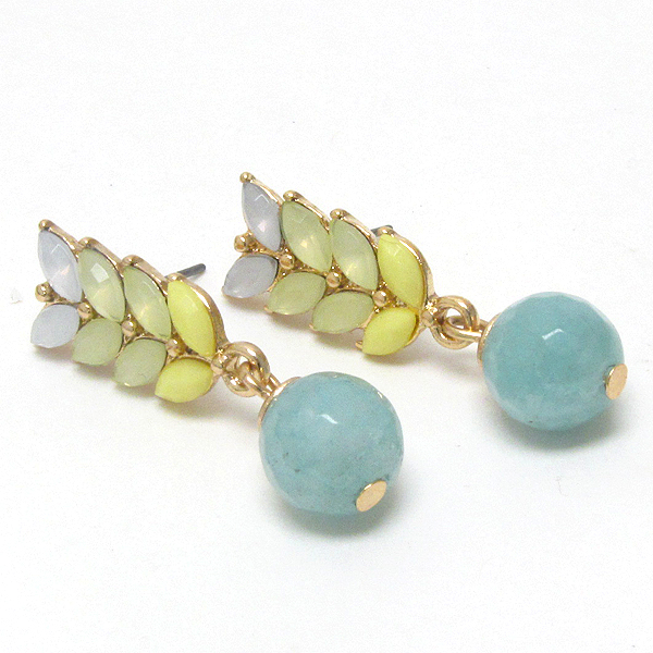 Colored stone leaf drop earring