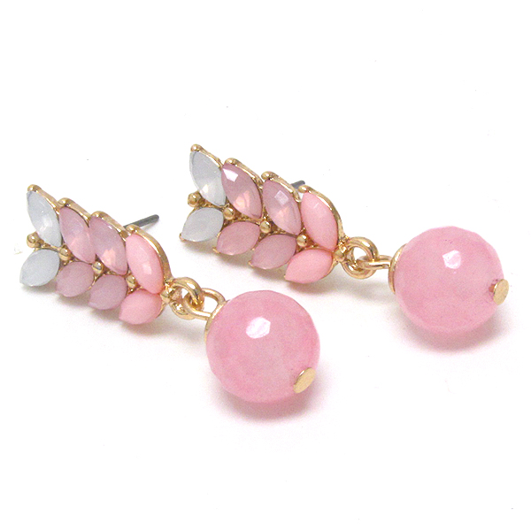 WHOLESALE COLORED STONE LEAF DROP EARRING 398801