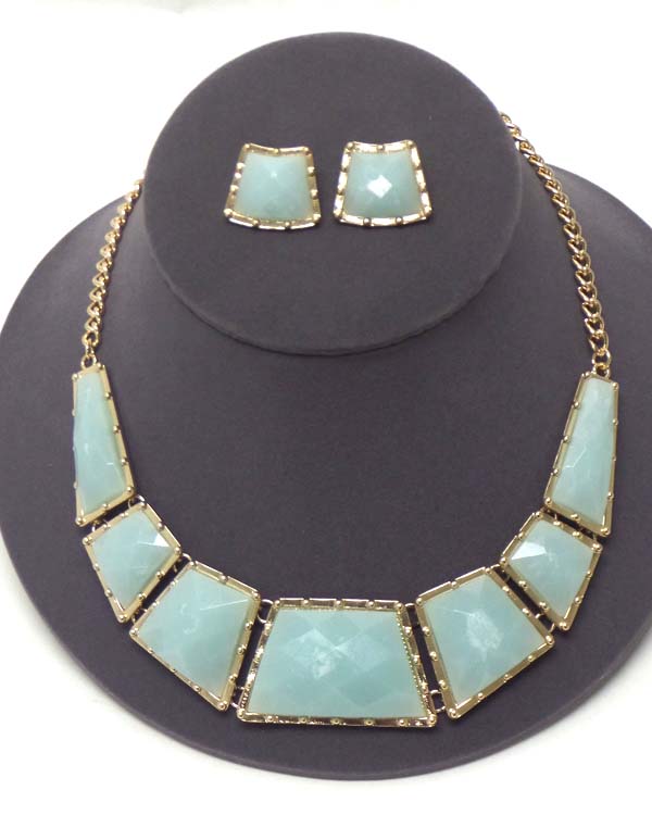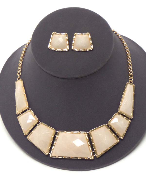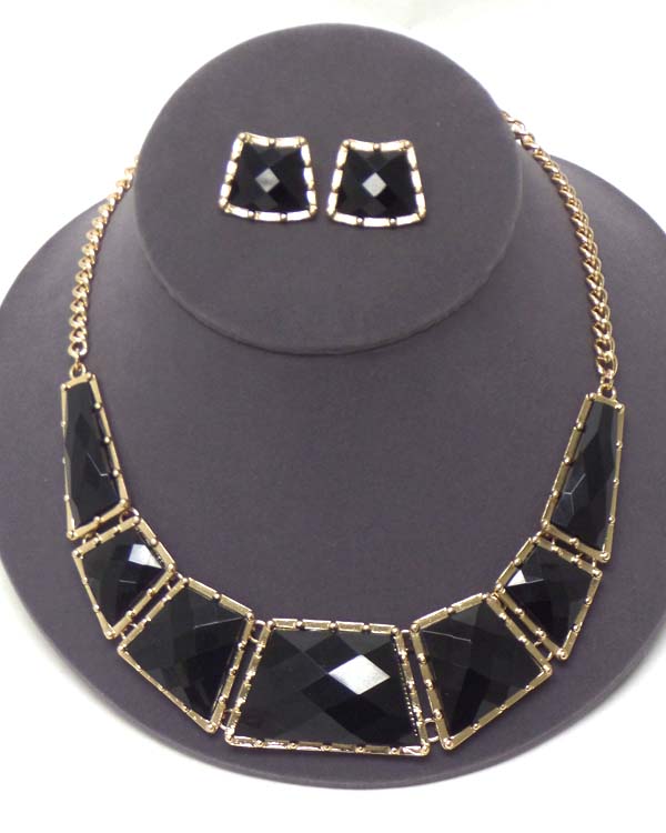 Facet acrylic stone linnk chocker style necklace earring set