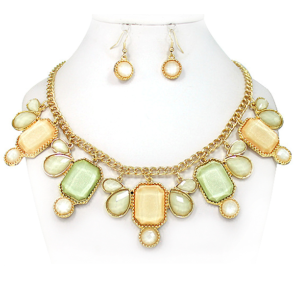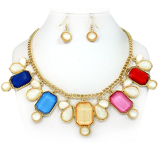 WHOLESALE MULTI SHAPE ACRYLIC STONE MIX DROP CHAIN NECKLACE EARRING SET 398915