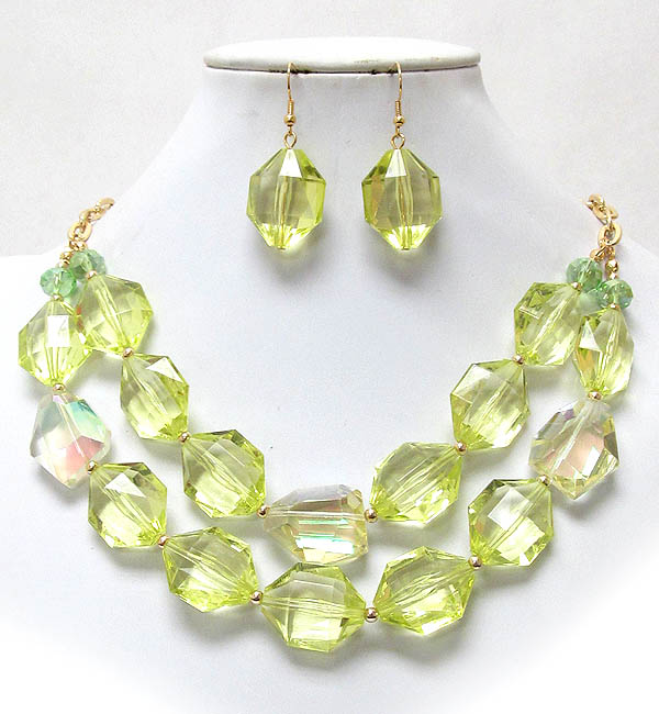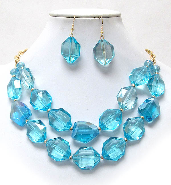 WHOLESALE ICE ACRYLIC BEAD LINK DOUBLE CHAIN NECKLACE EARRING SET 399151
