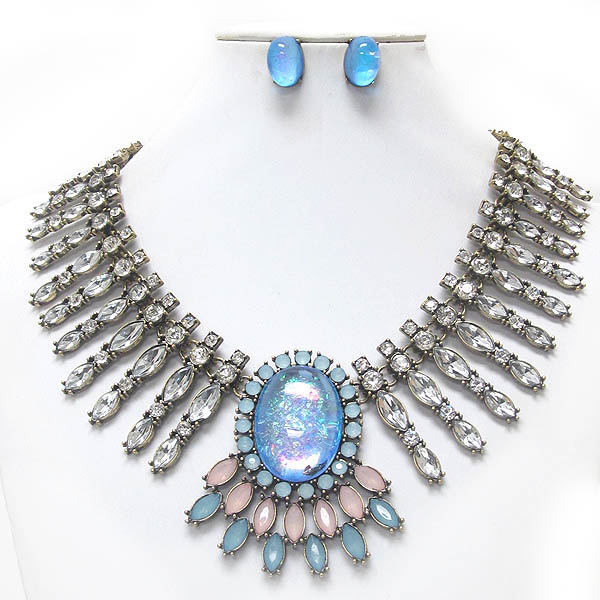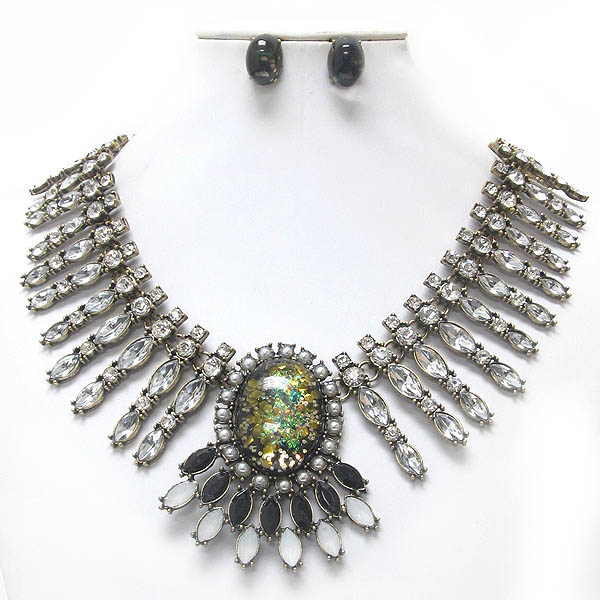 WHOLESALE LUXURY LINE ABALONE FINISH CENTER AND MULIT CRYSTAL DECO BOUTIQUE STYLE NECKLACE EARRING SET 399170