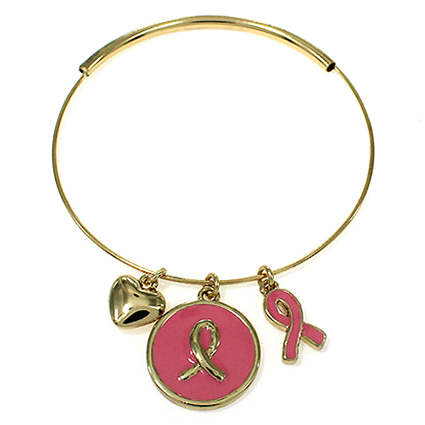 Pink ribbon or bow multi epoxy charm and flexible wire bangle bracelet breast cancer awareness
