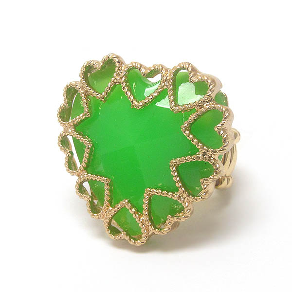 WHOLESALE METAL FILIGREE ON HEART STONE STRETCH RING 399508
