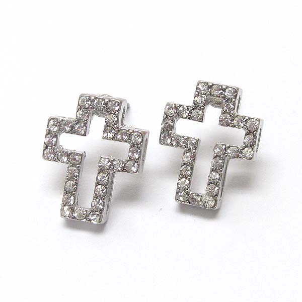 Premier electro plating crystal cross stud earring
