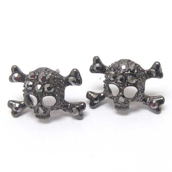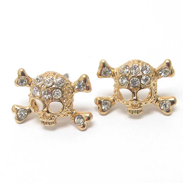 Premier electro plating crystal skull or skeleton stud earring
