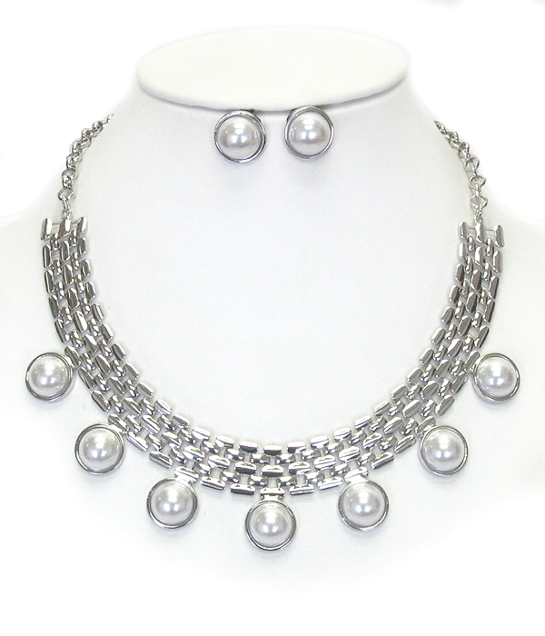 WHOLESALE WATCH BAND CHAIN AND MULTI PEARL DROP NECKLACE EARRING SET 399786