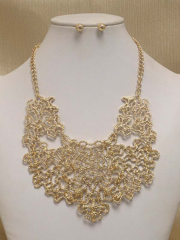 WHOLESALE METAL FILIGREE STATEMENT NECKLACE EARRING SET 399824