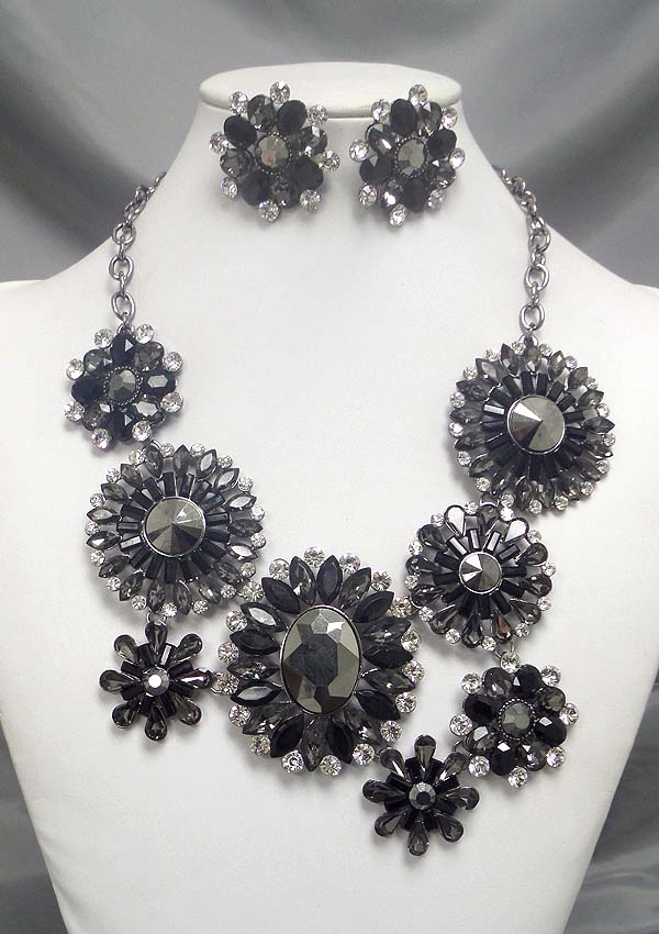 Luxury class victorian style and austrian crystal deco multi flower party necklace earring set