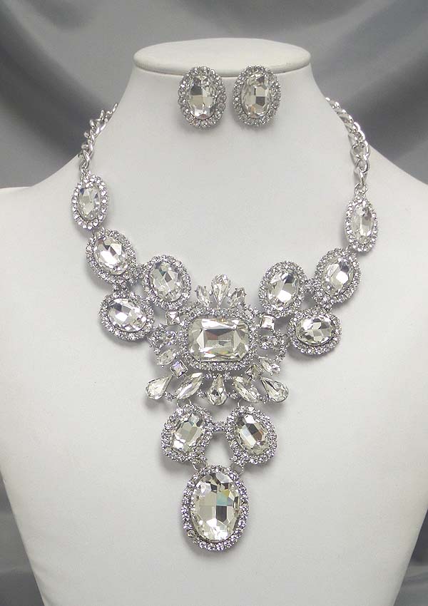 Luxury class victorian style and austrian crystal and facet glass deco drop party bib necklace earring set