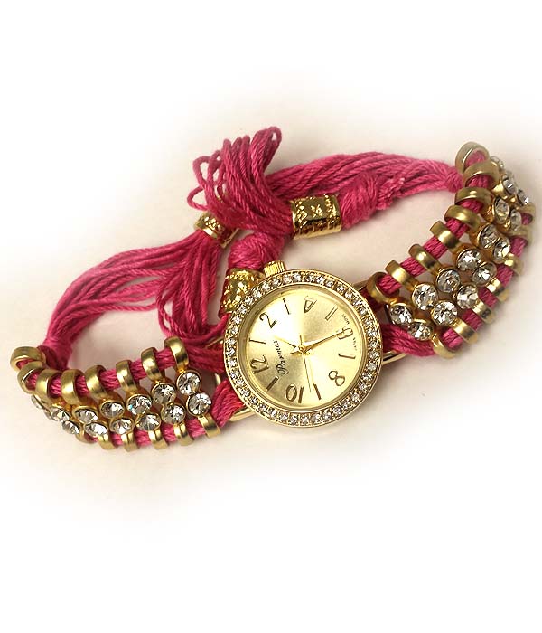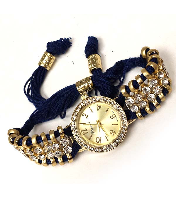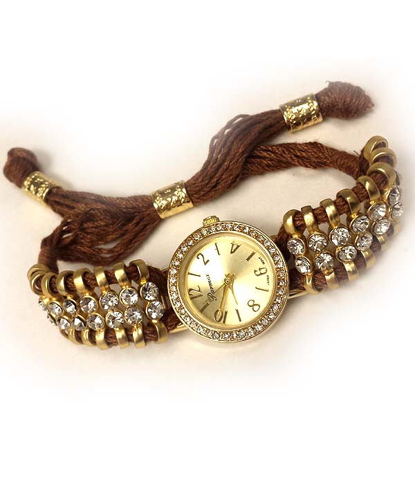 WHOLESALE CRYSTAL AND BRASS METAL ADJUSTABLE YARN BAND WATCH 400045