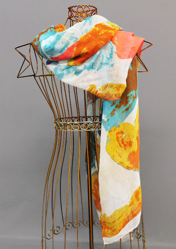 WHOLESALE MULTI COLOR BLOCK AND BORDER PRINT SCARF 400080