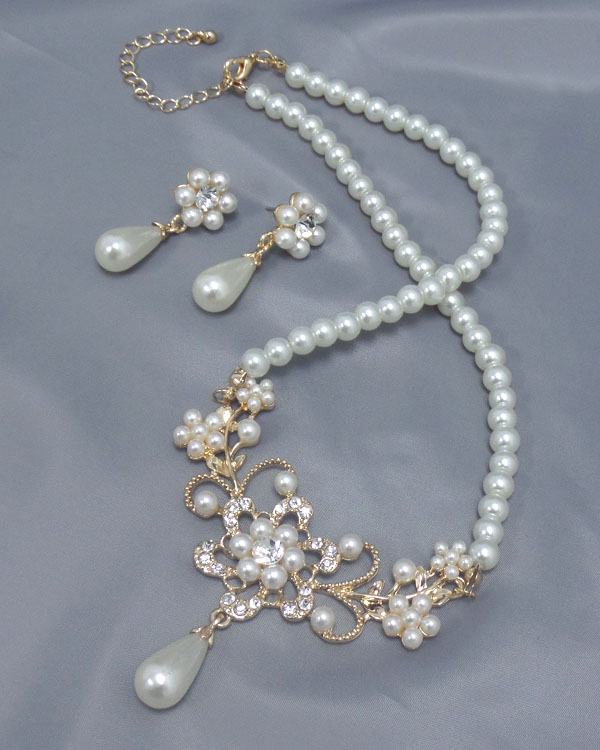 WHOLESALE MULTI CRYSTAL AND PEARL CHAIN NECKLACE EARRING SET 400114