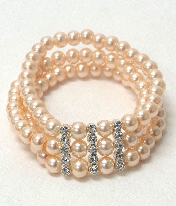 WHOLESALE CRYSTAL ACCENT TRIPLE PEARL STRETCH BRACELET 400188
