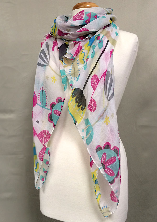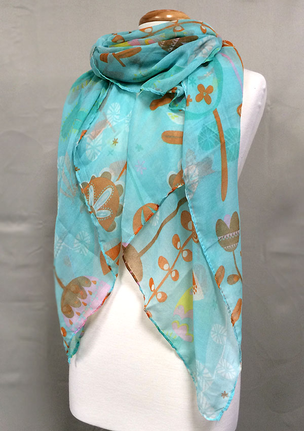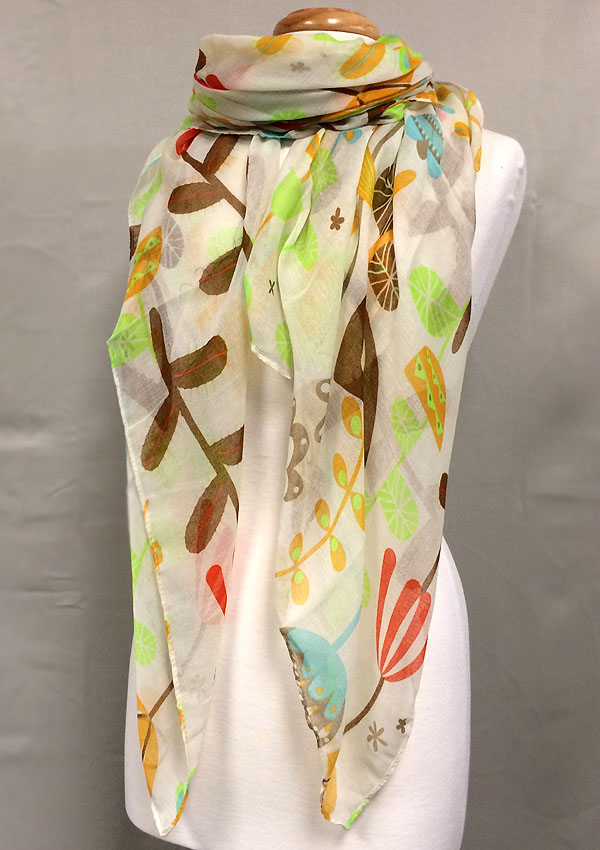 WHOLESALE GARDEN THEME FLOWER AND LEAF PRINT SCARF 400223