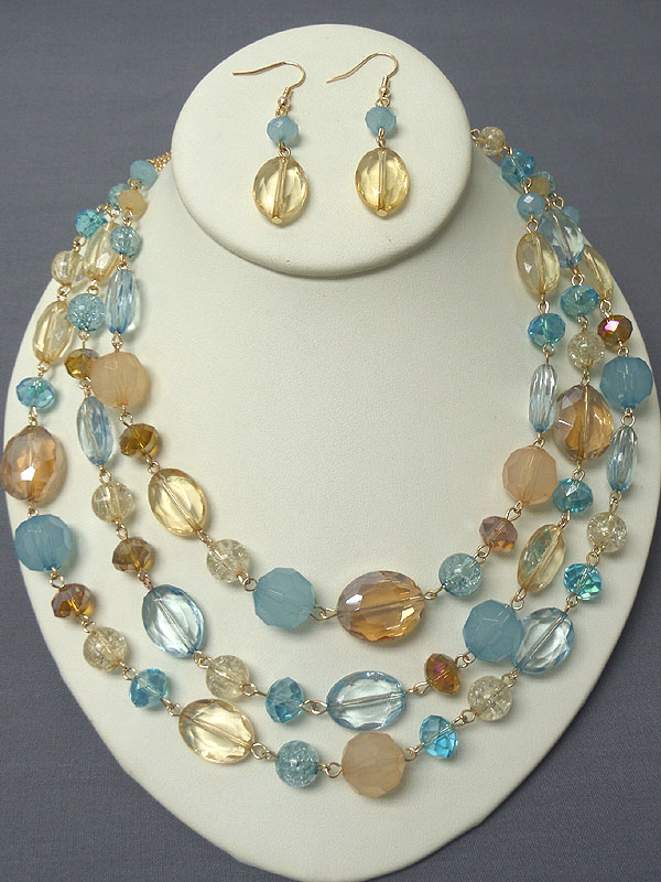 WHOLESALE ACRYLIC ICE BALL 3 LAYER NECKLACE EARRING SET 400318