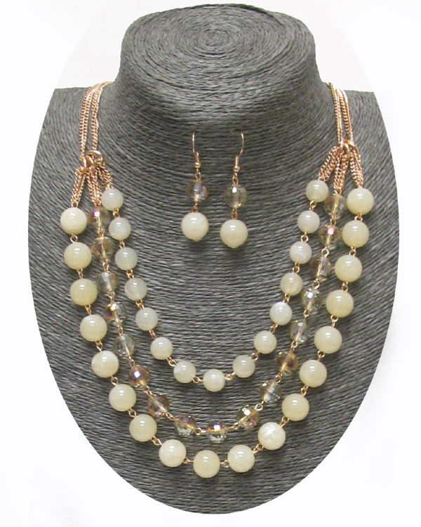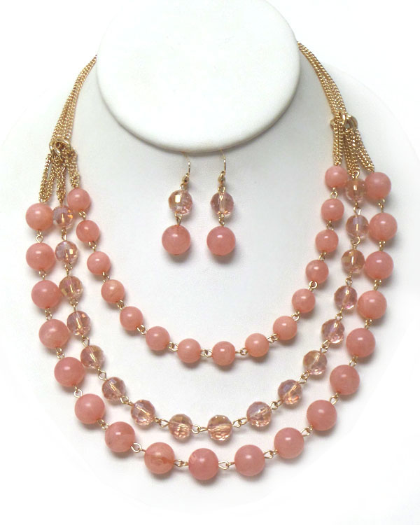Stone link 3 layer necklace earring set