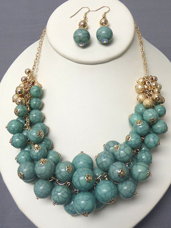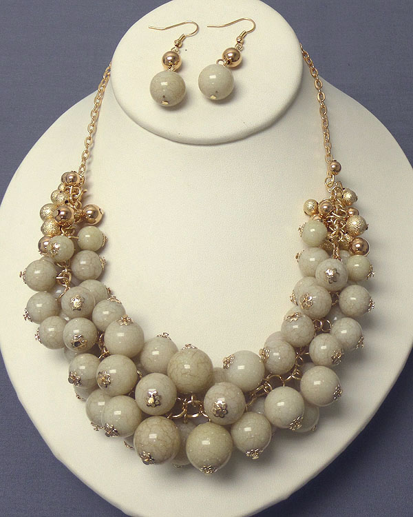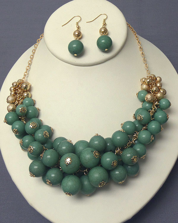 WHOLESALE MULTI FAUX BALL CLUSTER BOLD STATEMENT NECKLACE EARRING SET 400342