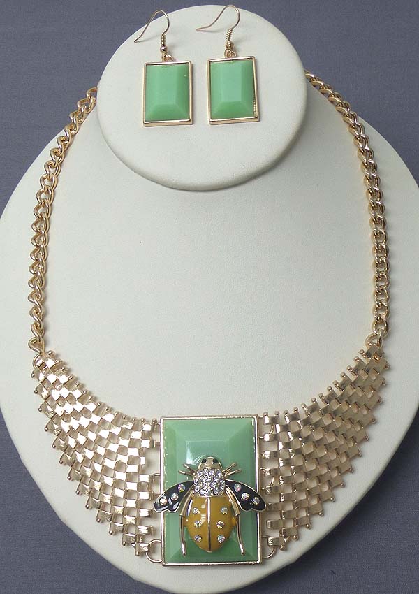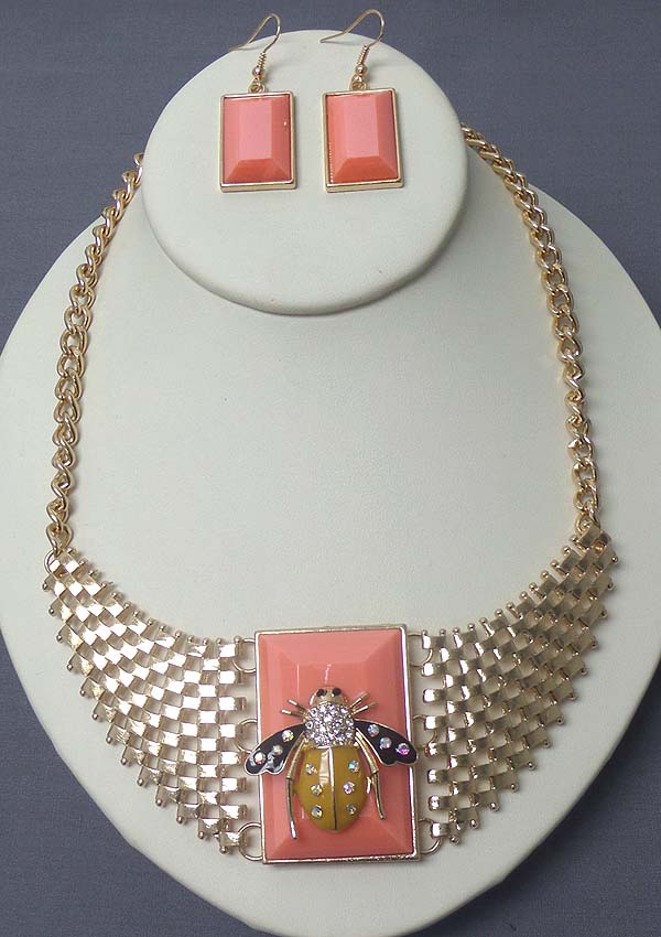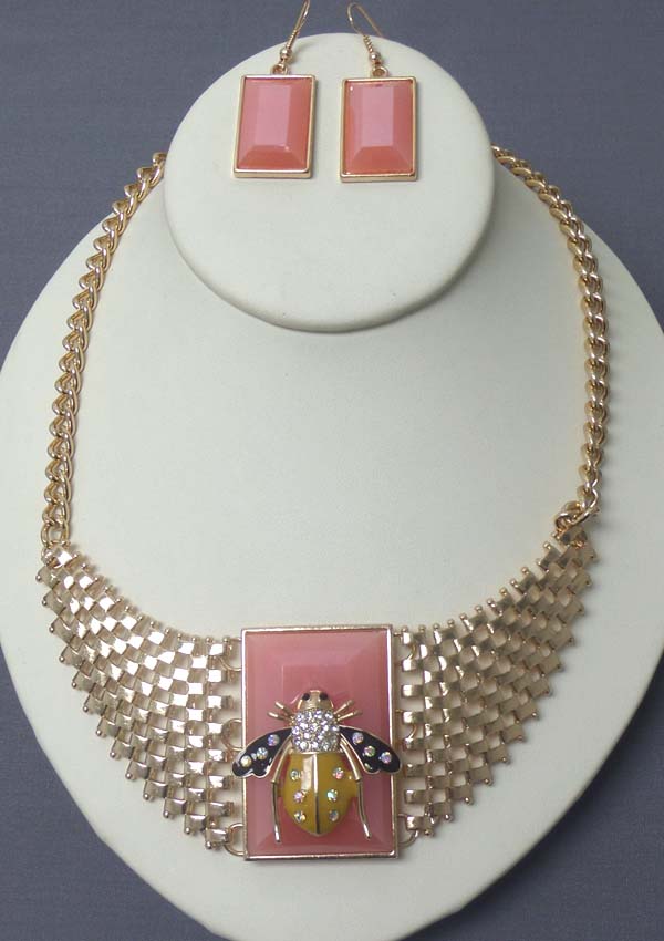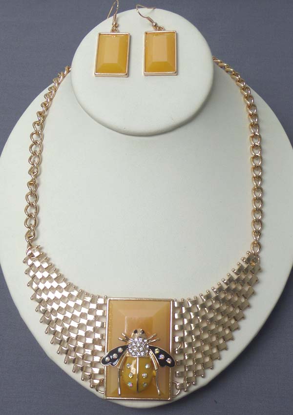 WHOLESALE CRYSTAL AND EPOXY BEE ON FACET STONE STATEMENT NECKLACE EARRING SET 400409