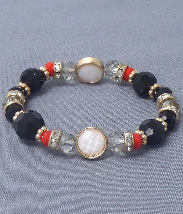Crystal rondelle and multi acrylic ball stretch bracelet