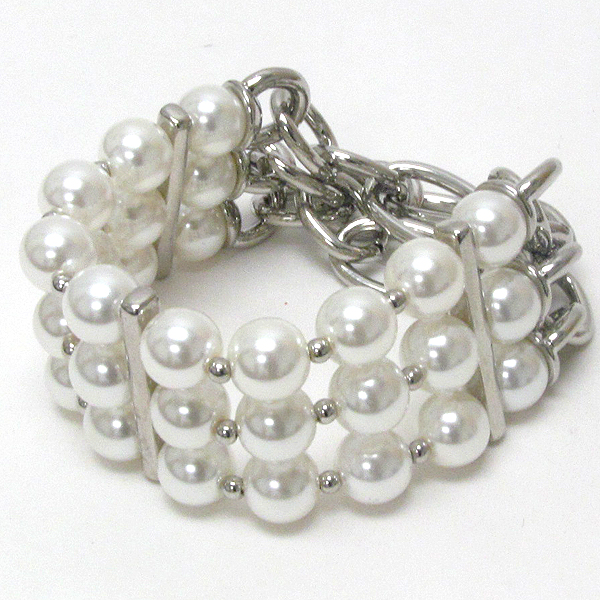 WHOLESALE 3 LAYER STRETCH PEARL AND CHAIN BACK BRACELET 400518