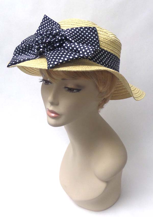 WHOLESALE POLKA DOT LARGE BOW ACCENT SUN HAT 400547