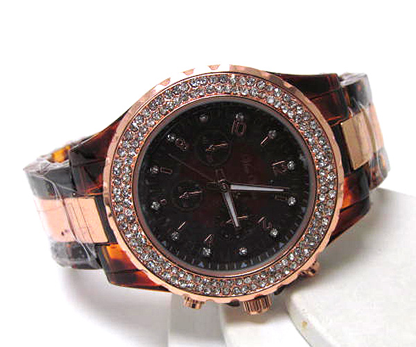 Crystal dial designer look acryl and metal band watch