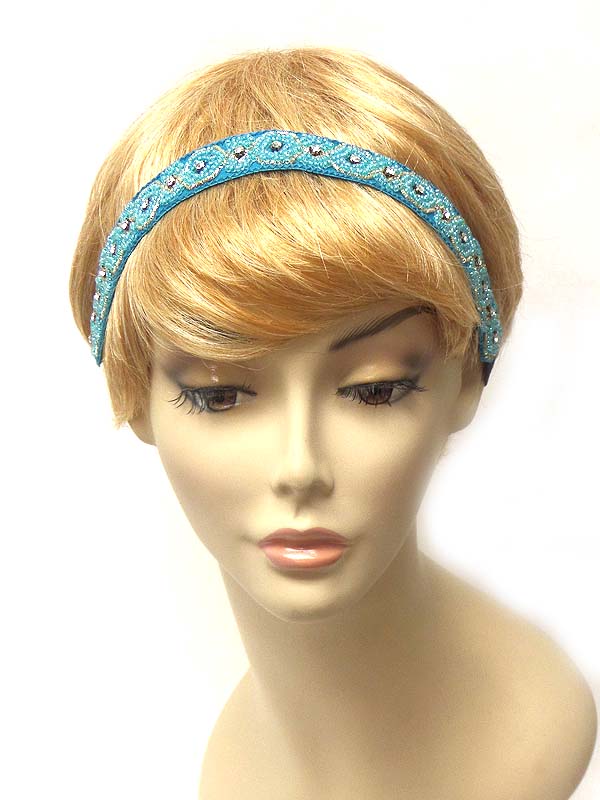 WHOLESALE HANDMADE CRYSTAL AND SEED BEAD ON FARIC HEADBAND - FOLKLORIC 400996