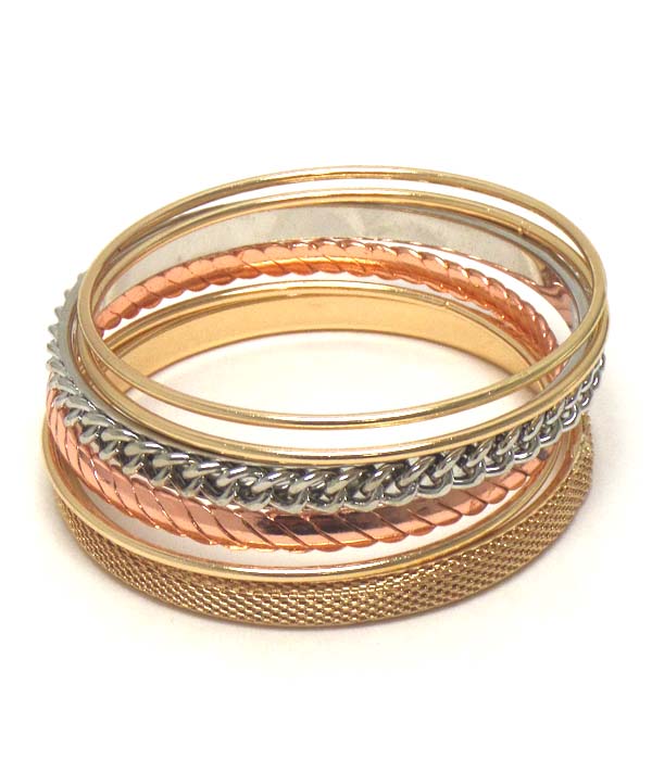 WHOLESALE MIXED CHAIN AND METAL BANGLE BRACELET SET OF 6 401030