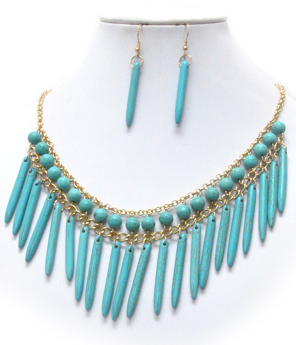 WHOLESALE MULTI TURQUOISE BALL AND ARROWHEAD DROP TRIBAL NECKLACE EARRING SET 401112
