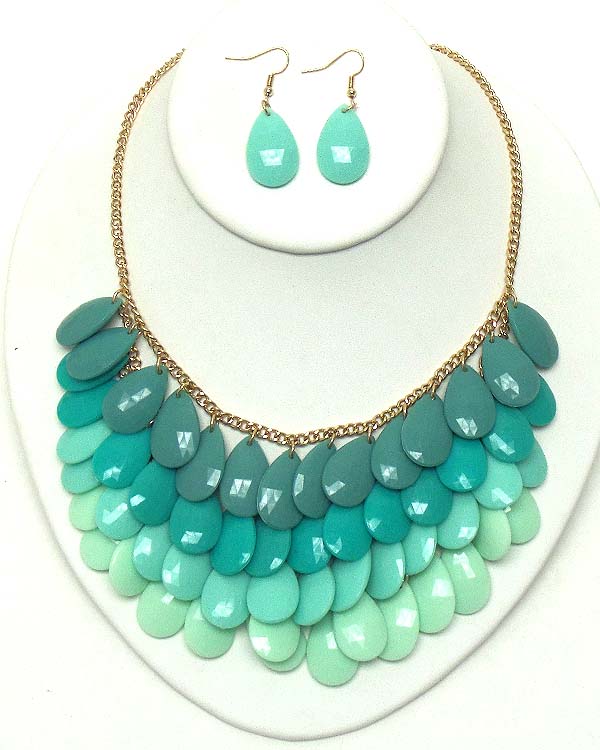WHOLESALE MULTI FACET ACRYLIC TEARDROP STATEMENT NECKLACE EARRING SET 401202