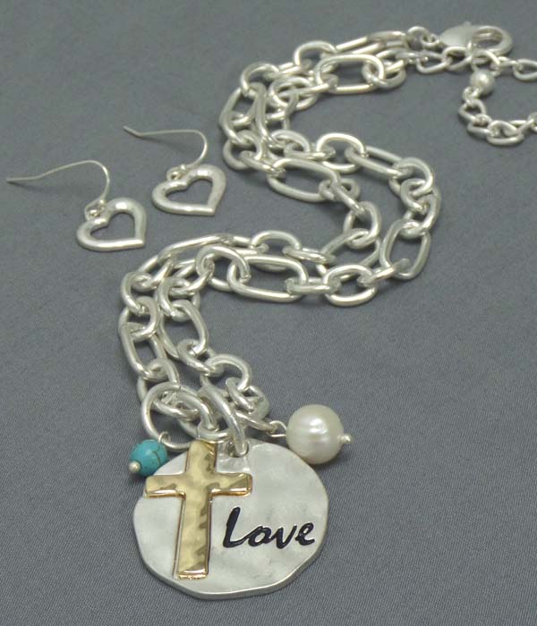 WHOLESALE LOVE AND CROSS DISK PENDANT NECKLACE EARRING SET 401214