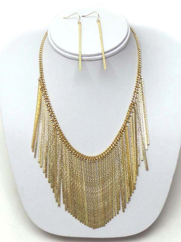 WHOLESALE TEXTURED MULTI METAL BAR DROP NECKLACE EARRING SET 401387