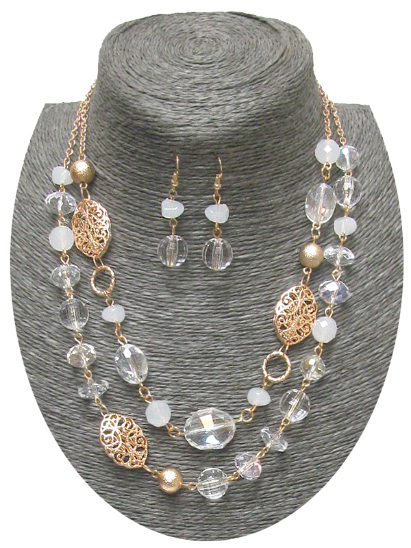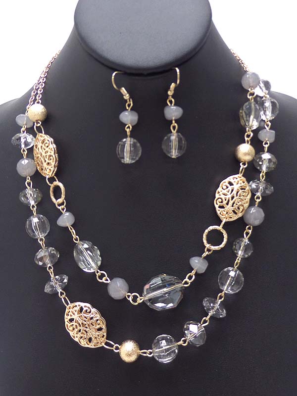 Metal filigree and multi facet acrylic ball 2 layer necklace earring set