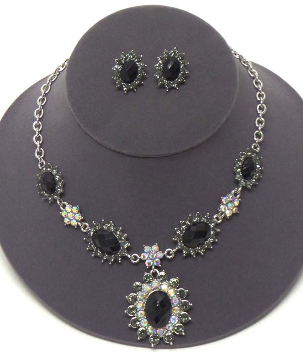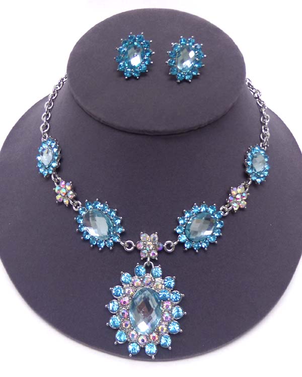 Crystal and facet glass flower pendant party necklace earring set
