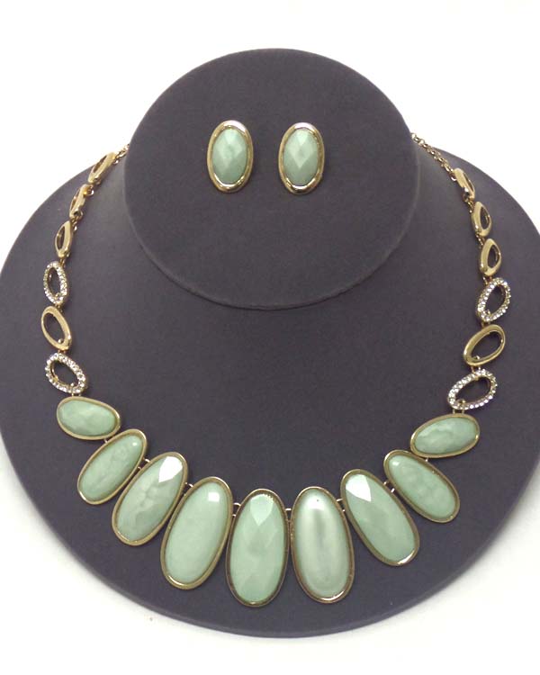 WHOLESALE FACET OVAL STONE LINK AND CRYSTAL CHAIN NECKLACE EARRING SET 401857