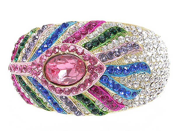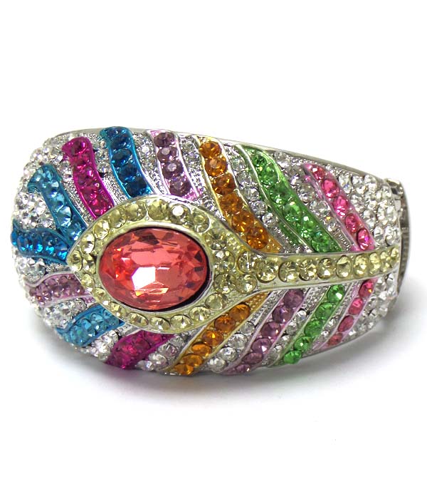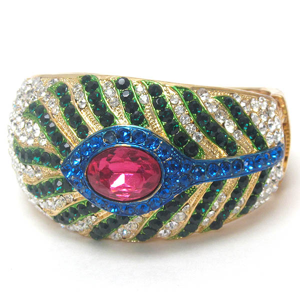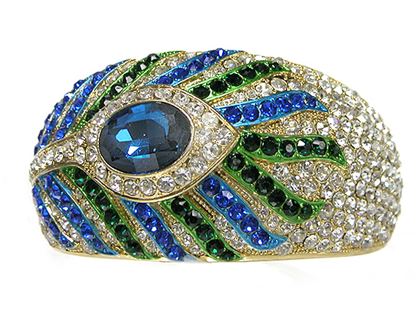 WHOLESALE CRYSTAL DECO PEACOCK FEATHER HINGE BANGLE BRACELET 402010