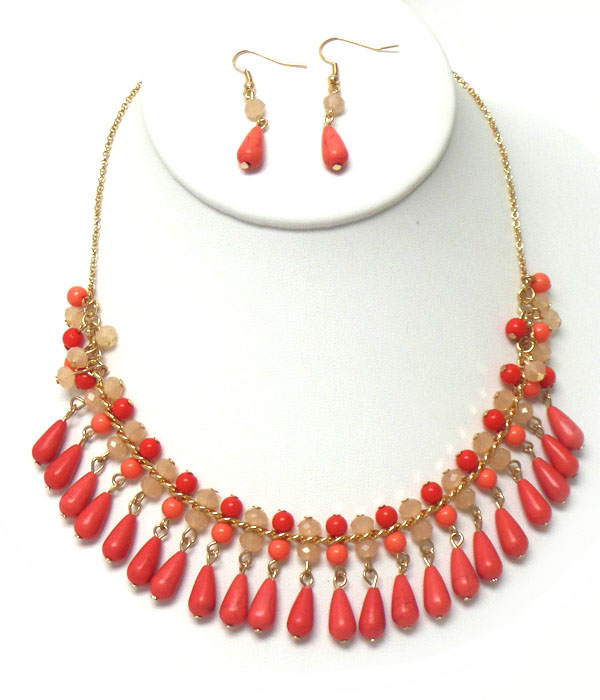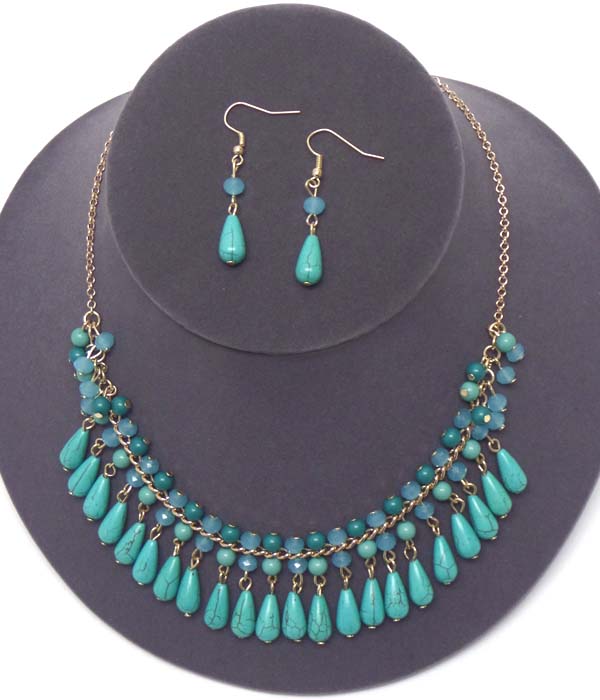 WHOLESALE MULTI TURQUOISE AND GLASS BEAD DROP NECKLACE EARRING SET 402271