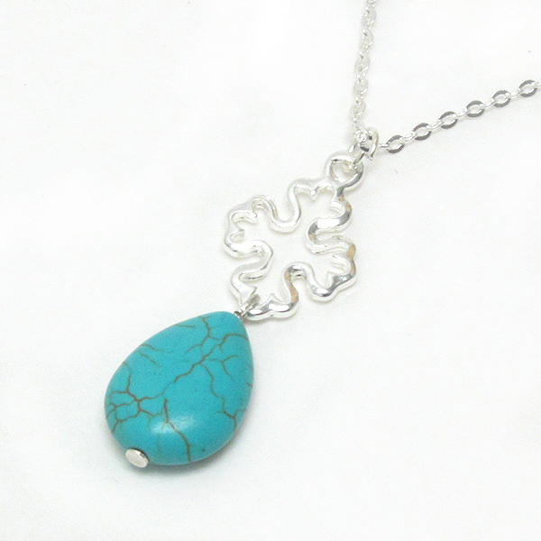 WHOLESALE CROSS AND TURQUOISE TEARDROP PENDANT NECKLACE 402401