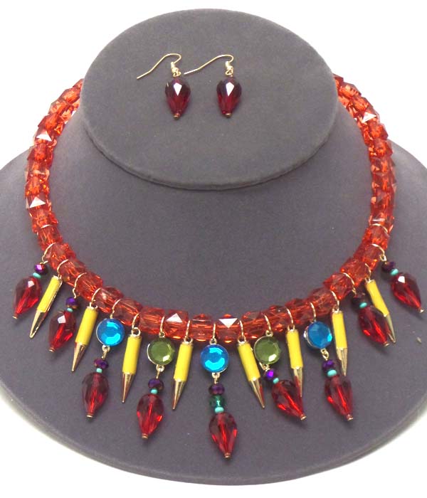 WHOLESALE MULTI ACRYLIC SPIKE DROP AND BEAD CHAIN NECKLACE EARRING SET 402469