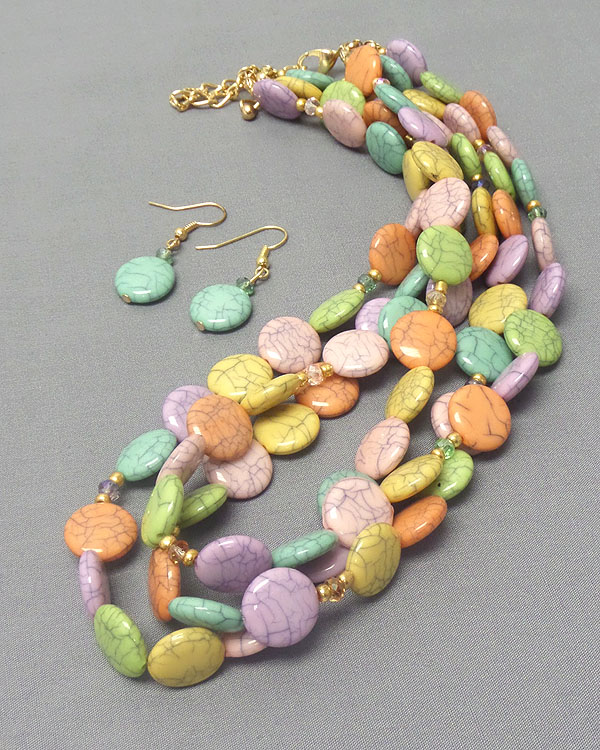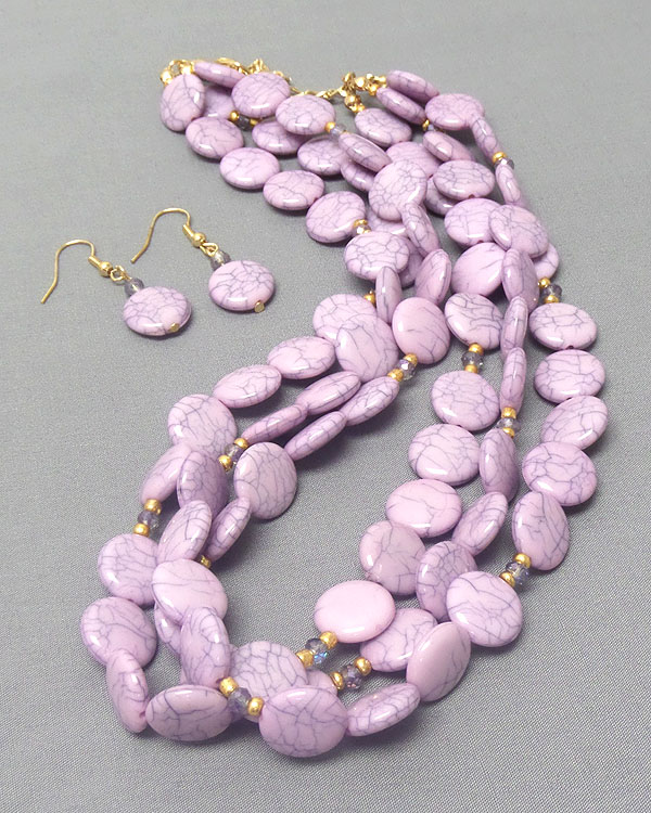 WHOLESALE MARBLE PRINT DISK STONE 3 LAYER NECKLACE EARRING SET 402759