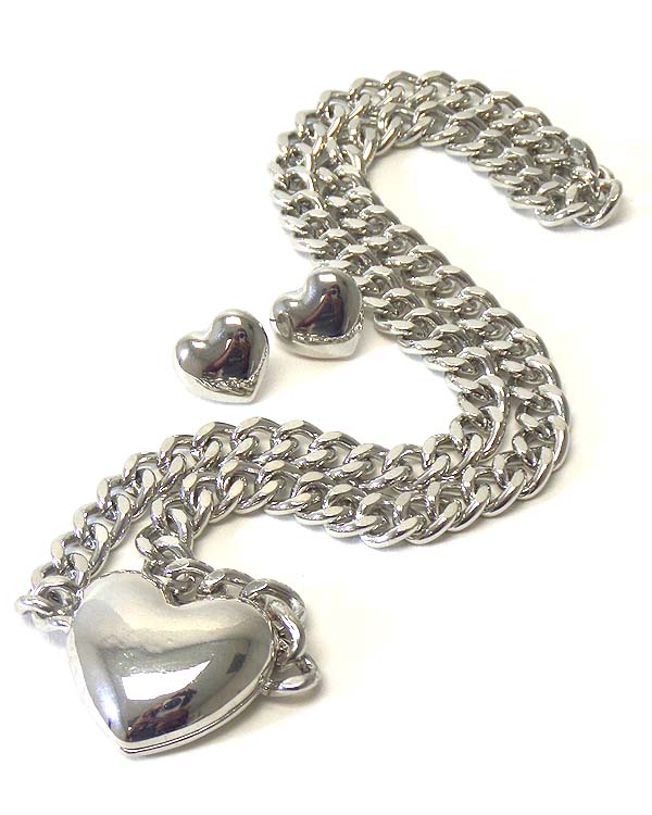 WHOLESALE METAL HEART THICK METAL CHAIN NECKLACE EARRING SET 402847
